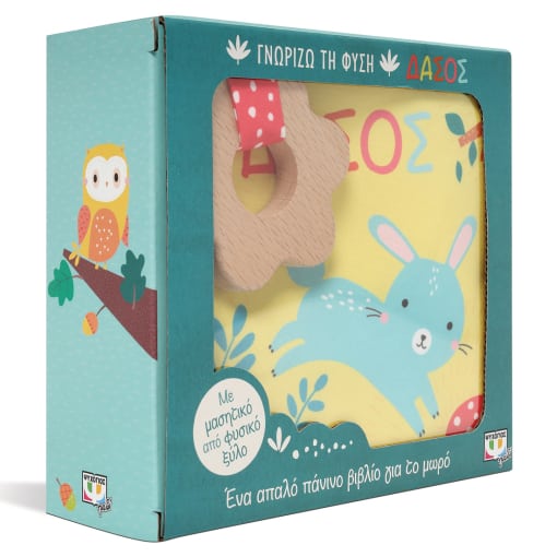Αυτό το υπέροχο βιβλίο διεγείρει τις αισθήσεις του μωρού, που αγγίζει τις απαλές πάνινες σελίδες, ακούει τον ήχο του εξωφύλλου, βλέπει τις πανέμορφες εικόνες των ζώων του δάσους και παίζει με το μασητικό από φυσικό ξύλο.