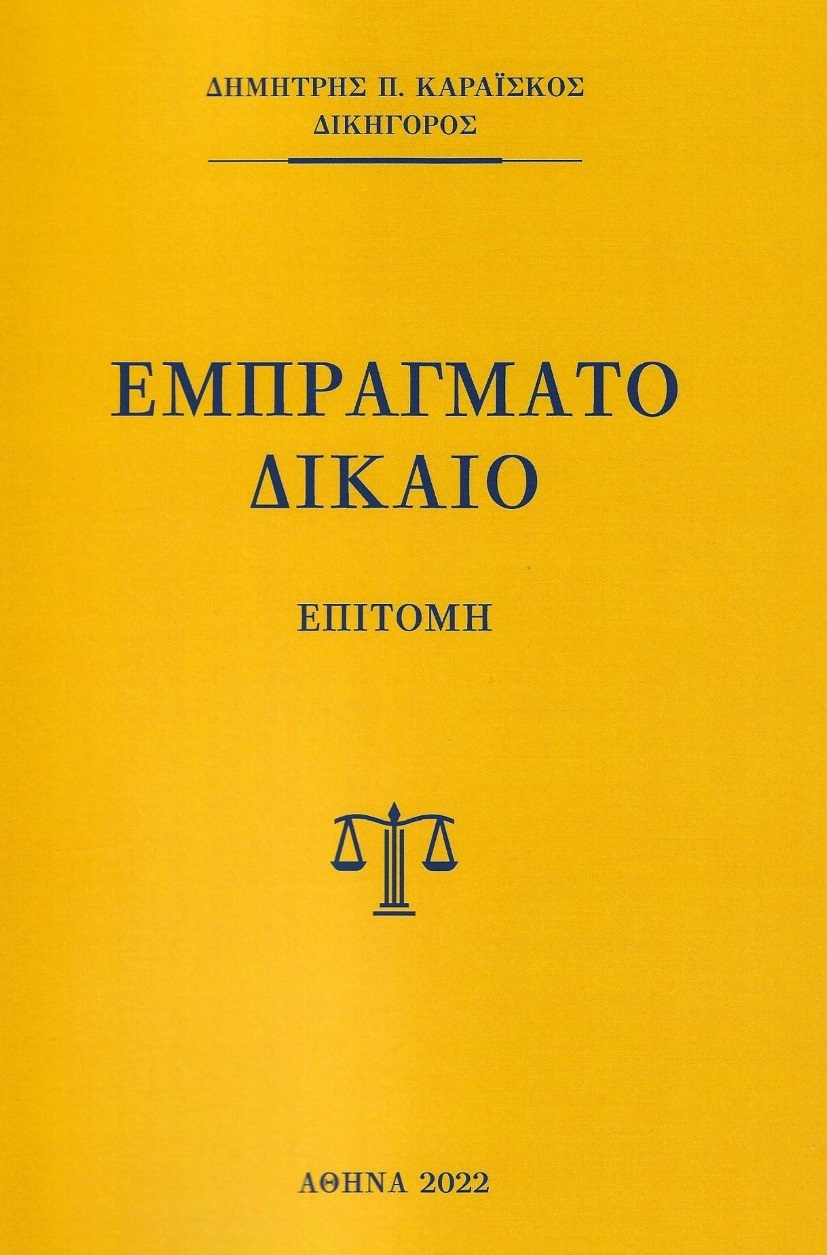 Έννοια του πράγματος, ( κατηγορίες ), Συστατικό, Παράρτημα, Κοινά πράγματα, Κοινόχρηστα πράγματα, Κατοχή, Νομή, Κυριότητα, ( Γένεση, Απόκτηση, Άσκηση, Προστασία ), Επικαρπία, Χρησικτησία, Ενέχυρο, Υποθήκη, Οίκηση, Μεταγραφή.