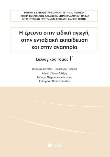 Η ΕΡΕΥΝΑ ΣΤΗΝ ΕΙΔΙΚΗ ΑΓΩΓΗ, ΣΤΗΝ ΕΝΤΑΞΙΑΚΗ ΕΚΠΑΙΔΕΥΣΗ ΚΑΙ ΣΤΗΝ ΑΝΑΠΗΡΙΑ ΣΥΛΛΟΓΙΚΟΣ ΤΟΜΟΣ Ι΄ 18.90 €