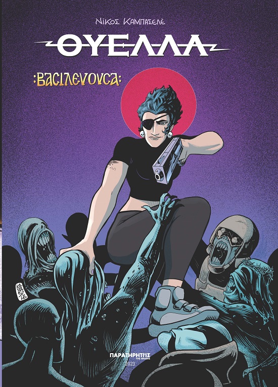 Οι ήρωες της γοτθικής σειράς κόμικ «Θύελλα 1» του Νίκου Καμπασελέ, στη «Θύελλα 2 – Βασιλεύουσα» αναλαμβάνουν δράση, το 10.020 μ.Χ, δυο χρόνια δηλαδή μετά την επιστροφή στην κανονικότητα –την επιστροφή δηλαδή των εικόνων και την αποκατάστασή τους– χάρη στην απέθαντη αυτοκράτειρα Θεοδώρα που επέστρεψε με τον στρατό των βρυκολάκων της στη γη και κυβερνά τη μοναδική αυτοκρατορία. Η καπετάνισσα Θύελλα αποβιβάζεται με τον δικό της στρατό μαχητριών στη Βασιλεύουσα, συνοδευόμενη από τη μοναχή Κασσιανή, η οποία με τη συνδρομή των λειψάνων της Αγίας Αικατερίνης και στίχους από τους Ψαλμούς του Δαβίδ, θα καταφέρει να λυτρώσει τη Βασιλεύουσα από την αυτοκράτειρα Θεοδώρα και τα «βαμπίρ» της που πίνουν συστηματικά το αίμα του λαού. Όργανα της εξουσίας, απαγορεύσεις κυκλοφορίας, τιμιοξυλίτες, βασιλικά ανάκτορα, υπόγειες στοές και «άγιοι πόλεμοι» πρωταγωνιστούν στη Θύελλα 2 – Βασιλεύουσα, το σενάριο της οποίας κλείνει με την πληγωμένη καπετάνισσα Θύελλα και την ομάδα της να αποχωρούν από τη γη, έχοντας συνείδηση ότι πρέπει να δώσουν μια ευκαιρία στη δημοκρατία και, κυρίως, στην ειρήνη, την οποία, αν παραμείνουν ως μαχήτριες που είναι, το μόνο που θα καταφέρουν θα είναι να μπερδέψουν τους ανθρώπους, όμως όπως λένε, «ο κόσμος χρειάζεται ειρήνη για να γιατρευτεί».