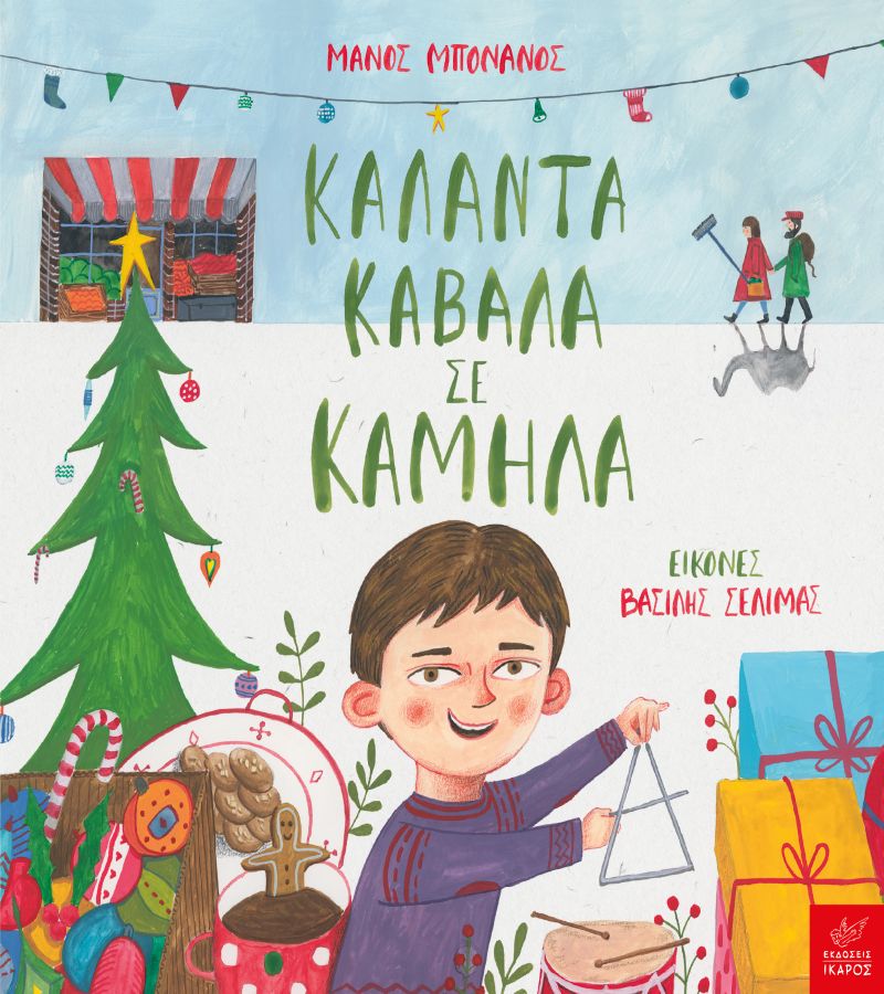 Τα Χριστούγεννα στο παραμύθι του Μάνου Μπονάνου είναι αναπάντεχα αλλιώτικα. Έχουν χουρμάδες και μπανάνες, καφάσια και τελάρα, χάρτινα και πλαστικά κουτιά. Ένα μικρό μανάβικο, γεμάτο μυρωδιές και χρώματα. Κι ένα αγόρι που ταξιδεύει σε ερήμους σαν τρικυμισμένες θάλασσες, σε άγριες ζούγκλες και άγνωστα νησιά. Και λέει τα κάλαντα καβάλα σε καμήλα! Μια ευφάνταστη χριστουγεννιάτικη ιστορία σαν παλιό παραμύθι, με την τρυφερή ματιά του συγγραφέα και τα μαγικά χρώματα του Βασίλη Σελιμά. Ένα βιβλίο που μας μεταφέρει ατόφια τη χρυσόσκονη των γιορτινών ημερών και μας γεμίζει αγάπη κι αισιοδοξία.