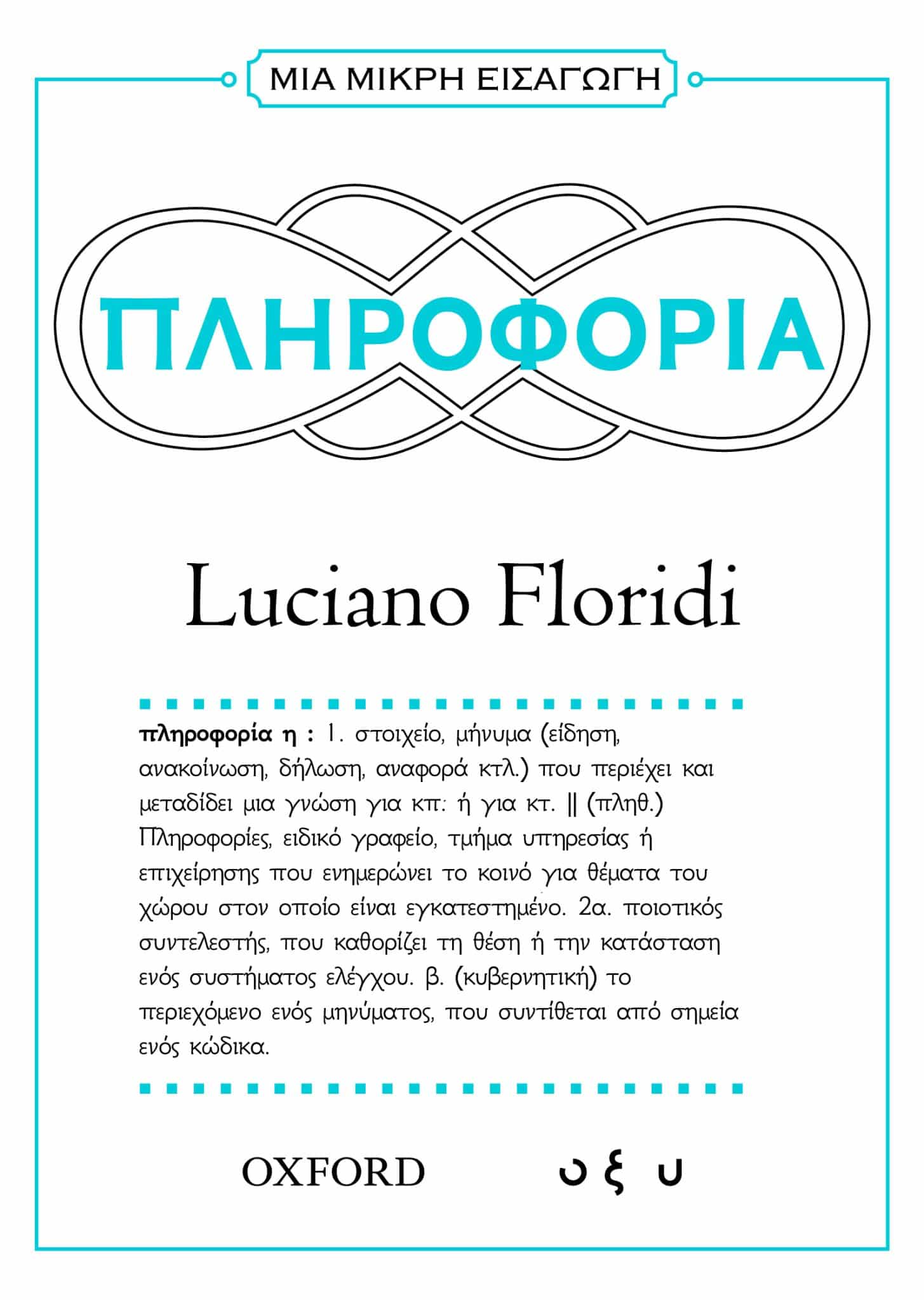 Ζούμε σε μια κοινωνία που ξεχειλίζει από πληροφορίες, αλλά λίγοι αντιλαμβάνονται πραγματικά τη φύση της πληροφορίας. Στο βιβλίο «ΜΙΑ ΜΙΚΡΗ ΕΙΣΑΓΩΓΗ: Πληροφορία», ο ειδικός στη φιλοσοφία Luciano Floridi εξερευνά τη σχέση της πληροφορίας με τη φιλοσοφία και την επιστήμη. Αναλύει τις ρίζες της στα μαθηματικά και εξετάζει τον ρόλο της σε διάφορους τομείς, συμπεριλαμβανομένης της βιολογίας, ενώ επικεντρώνεται σε έννοιες όπως το “Infoglut” (υπερβολικές πληροφορίες προς επεξεργασία). Το βιβλίο αναδεικνύει τη σημασία και την αξία της πληροφορίας, εστιάζοντας σε ηθικά και κοινωνικά ζητήματα.