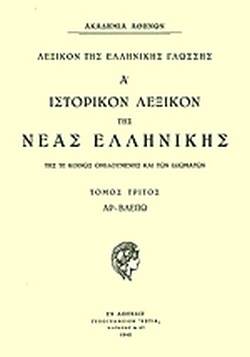 ΙΣΤΟΡΙΚΟΝ ΛΕΞΙΚΟΝ ΤΗΣ ΝΕΑΣ ΕΛΛΗΝΙΚΗΣ ΤΟΜΟΣ 7ΟΣ ΤΕΥΧΟΣ 1Ο 25.01 €