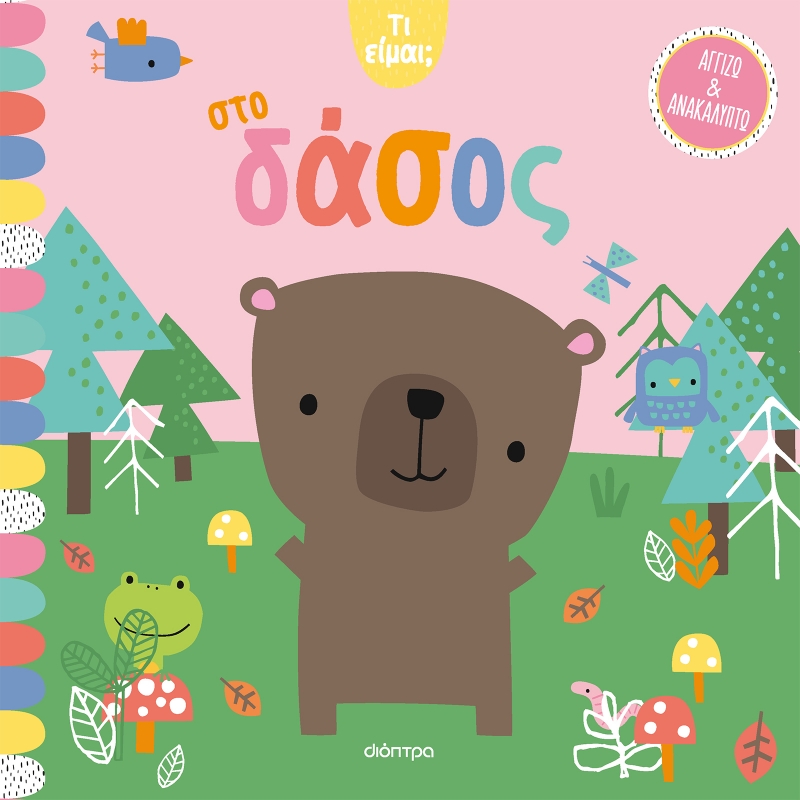 Τα παιδιά αγγίζουν και ανακαλύπτουν τα ζωάκια που κρύβονται στο δάσος μέσα από αυτό το πολύχρωμο παιχνιδοβιβλίο με τις διαφορετικές υφές.