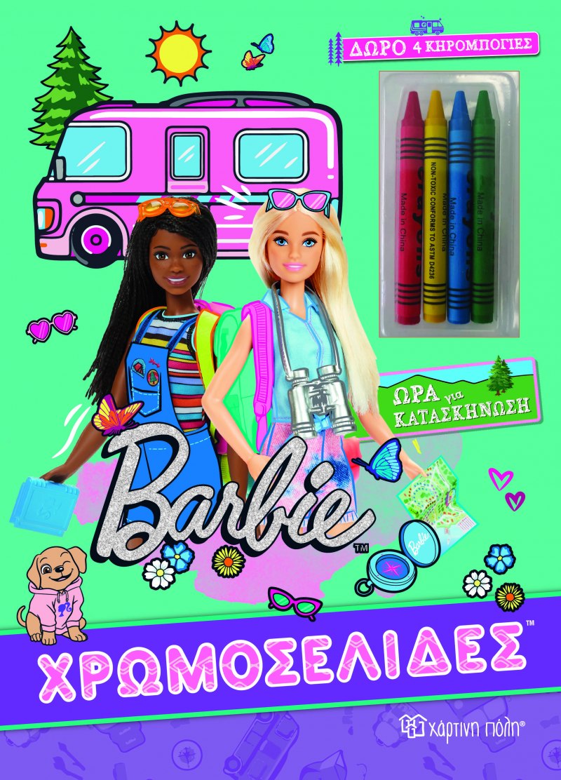 Ακολούθησε την Barbie και τις φίλες της στην πιο υπέροχη εκδρομή! Χρωμάτισε, παίξε, διασκέδασε και ζήσε μαζί της περιπέτειες στην κατασκήνωση!